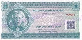 Je vyrobený zo 100 % bavlneného papiera používaného pri výrobe pravých bankoviek; bol vytvorený ako prvý svojho druhu a je jediným originálnym a oficiálnym konceptom výroby napodobenín bankoviek slúžiacich ako suvenír; je identický s pravými bankovkami s tým rozdielom, že nie je určený na použitie v platobnom styku; obsahuje množstvo ochranných prvkov ako pravé bankovky (hologram, mikrotlač, UV ochranné prvky, atď.), jednotlivé vydania sú označené rokom vydania, ako aj poradovým číslom série, je vytvorený a vyrobený v spoločnosti Oberthur Fiduciaire. Rozmery 136x74mm