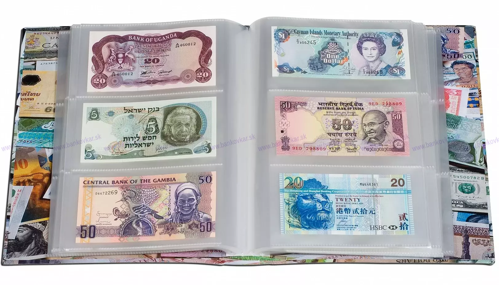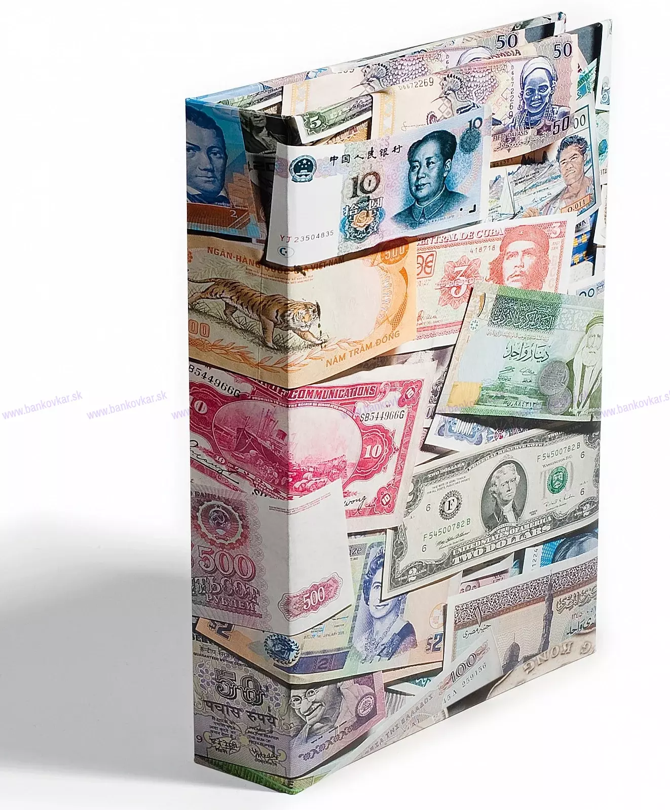 - Album má atraktívny, veselý vzhľad vďaka farebným motívom bankoviek z celého sveta.