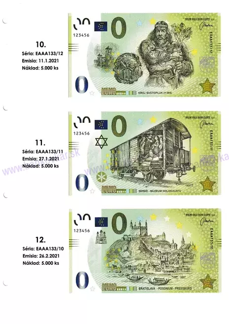 list s potlačou vydaných Slovenských MemoEuro2021 133/10÷12