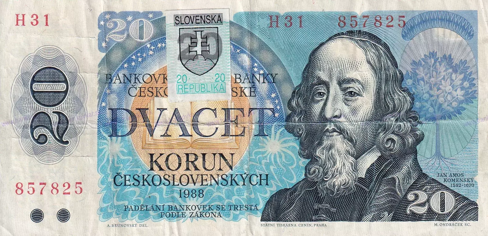 20 Kčs 1988 kolkovaná séria H31 (stav 3+)