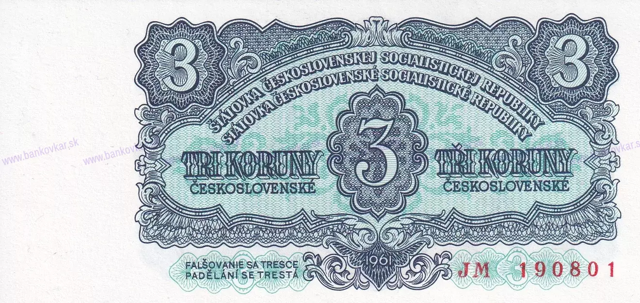 3 Kčs 1961 séria JM (stav UNC)