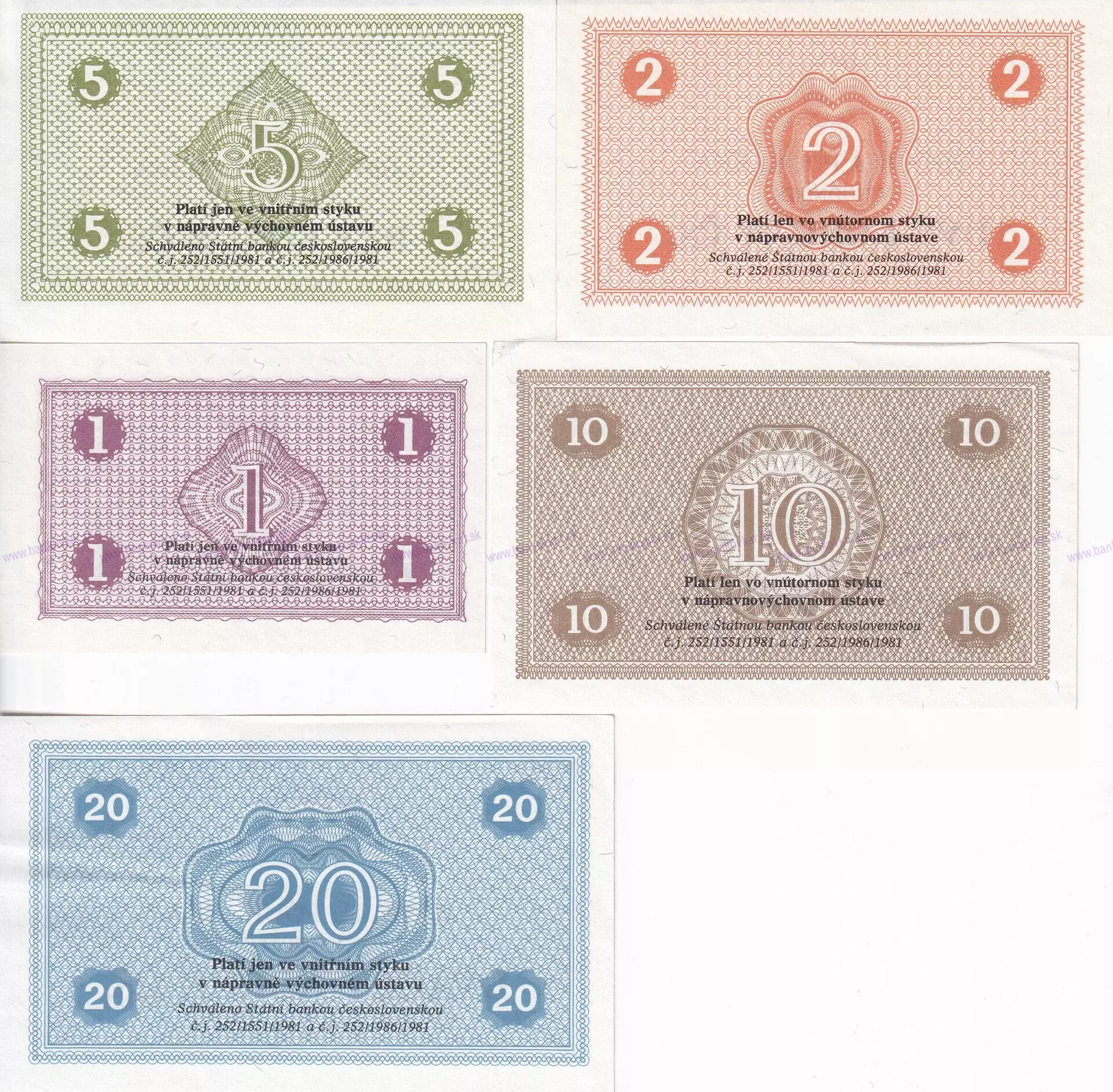 Ústavné poukážky, sada 1-2-5-10-20