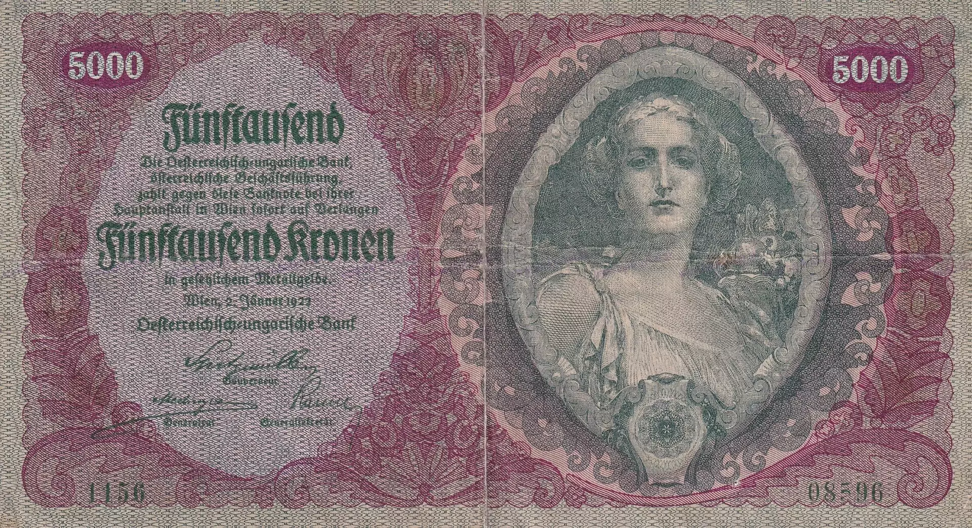 5000 Kronen 1922 neperforovaná (stav 2-)