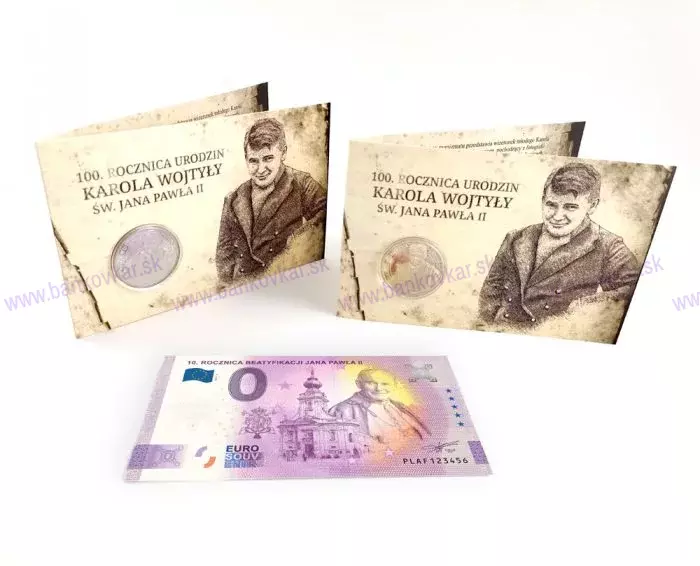| Set A. obsahuje: | 2 ks mince k 100. výročiu narodenia K.Wojtylu - sv.Jána Pavla II.: |