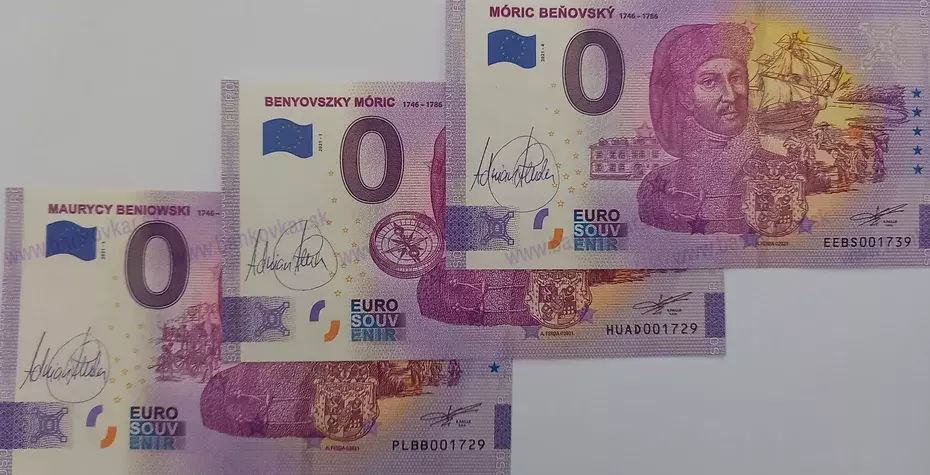 Set 3 ks Móric Beňovský (SK+HU+PL) podpis