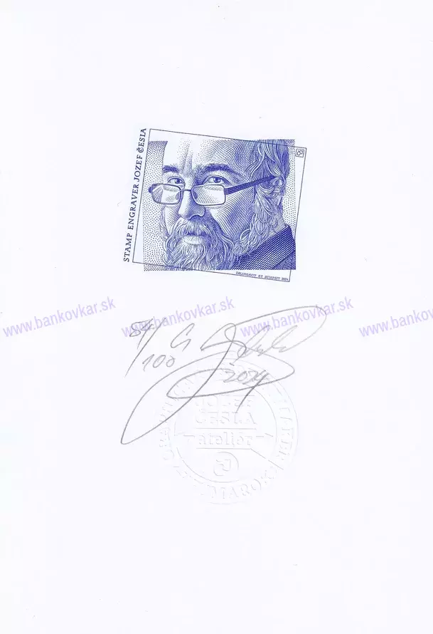 Grafický list - Autoportrét „stamp engraver - 77" Jozef Česla ml. novinka