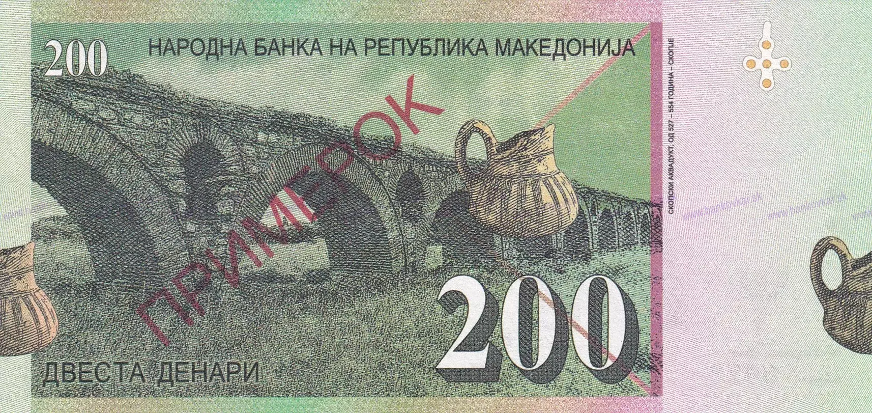 -Vydaná: 17.7.2014 -Veľkosť: 146 x 70 mm -Zloženie: papier s vodoznakom, UV fluorescenčné vlákna, individuálne sériové čísla, mikrotlač, UV plomba výrobcu -Nominálna hodnota: 200 Denari fantasy -Predná strana: Socha Venuše z Ckupi, II. Storočia po Kr., Archeologické nálezisko Skupi Skopje. -Zadná strana:Akvadukt v Skopje, archeologické nálezisko nachádzajúce sa vo Vizbegove neďaleko mesta Skopje, 527 - 554 rokov. -Vydaných: 800 kusov offset, 10kusov digitálna tlač -Popis: séria MG 0000000 , vodoznak YPSILON