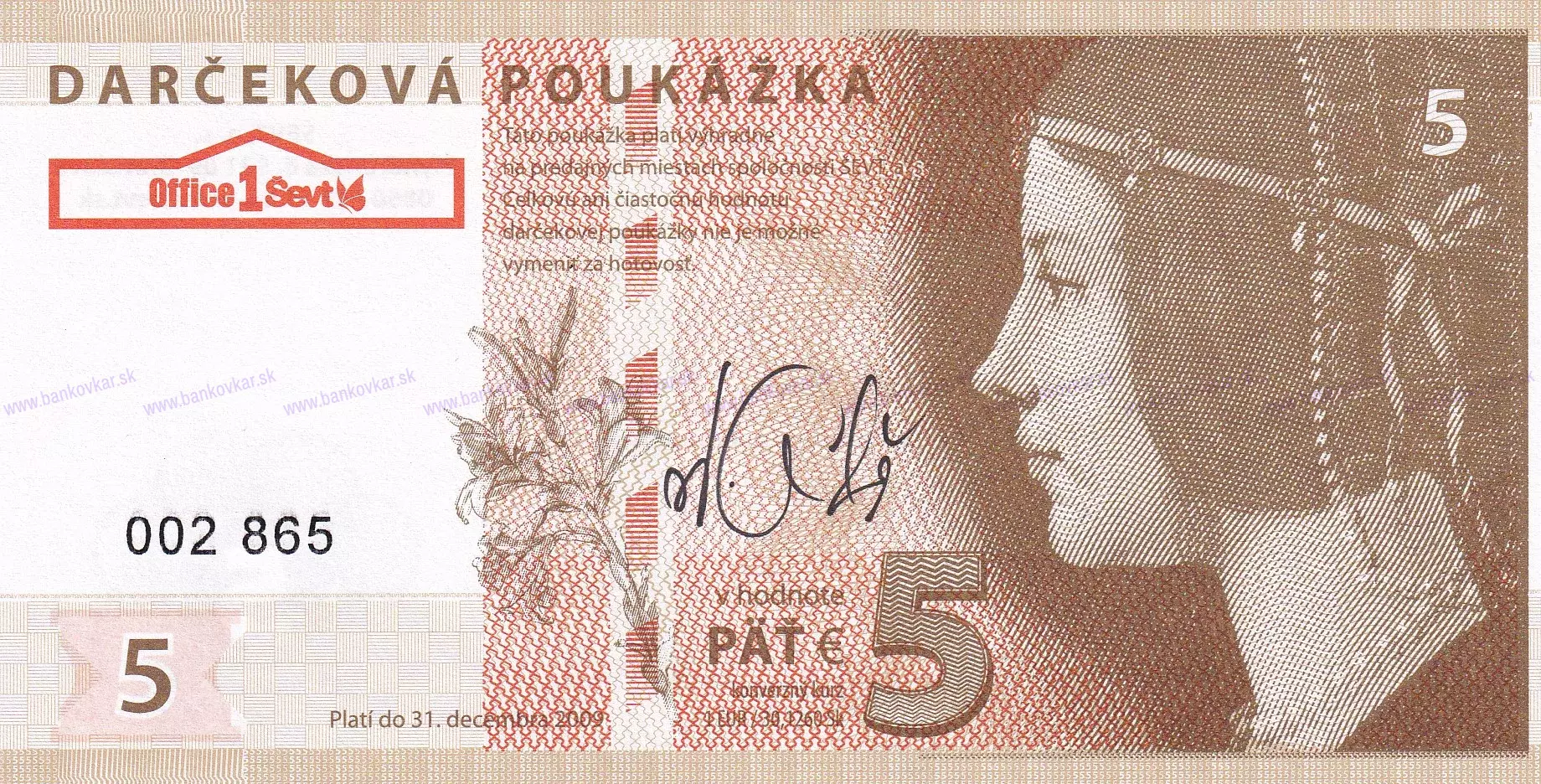 5POUKSEVT2009 Darčeková poukážka 5€ 2009/podpis/ veľká krásna poukážka