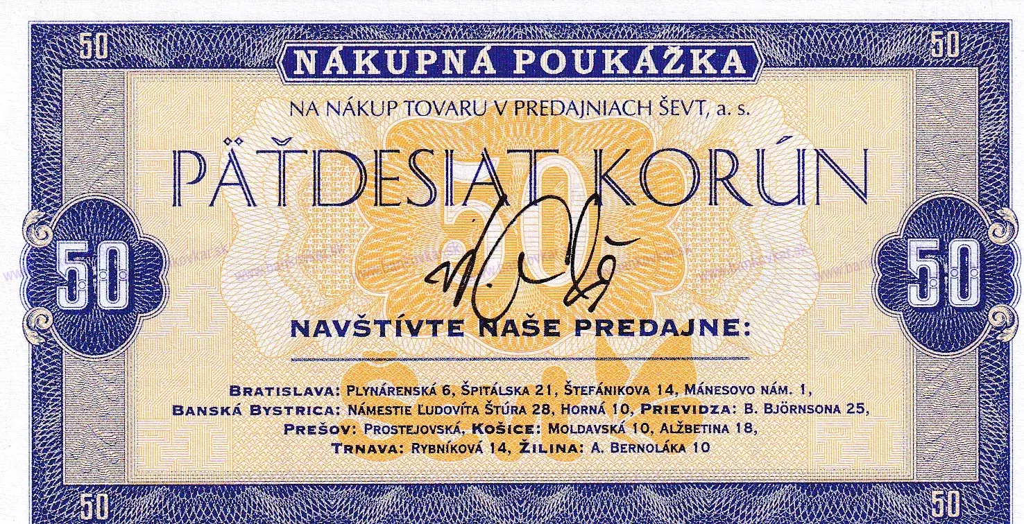 50KORSEVT Nákupná poukážka 50 Korún ŠEVT/podpis/ bez číslovania
