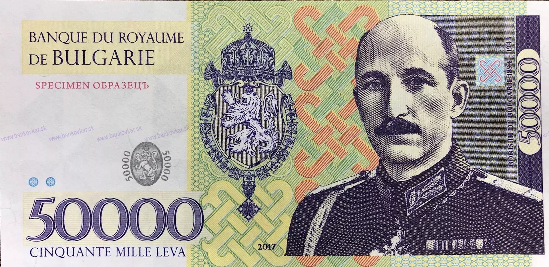 -Vydaná: 2017 -Veľkosť: 151 x 74 mm -Zloženie: Papier so spojitým vodoznakom. Vytlačené na papieri s vodoznakom a vláknami fluoreskujúcimi pod ultrafialovým svetlom "GABRIS BANKNOTE NO VALUE" -Nominálna hodnota: 50000 Leva fantasy -Predná strana: Boris III 1894-1943 bol prvý bulharskýpanovník v Bulharskom cárstve. -Zadná strana: Chrám svätého Alexandra Nevského (bulh. Храм-паметник Свети Александър Невски – Chram-pametnik Sveti Aleksandăr Nevski) je chrám pravoslávnej cirkvi a pamätník v Sofii v Bulharsku. -Vydaných: 400ks -Popis: číslovanie s jedinečnými individuálnymi číslami