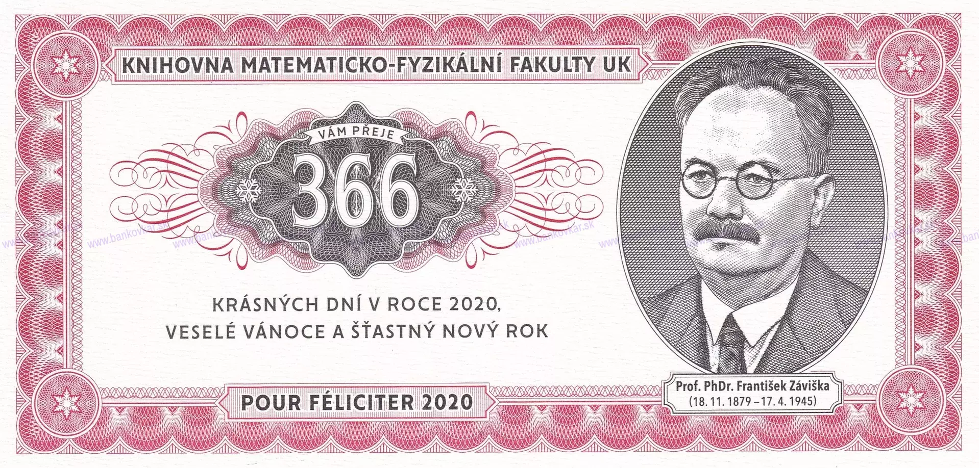 | Predná strana: | František Záviška (18. novembra 1879 vo Veľkom Meziříčí - 17. apríla 1945 v nemeckom Gifhorn [2]) bol český teoretický fyzik | |||