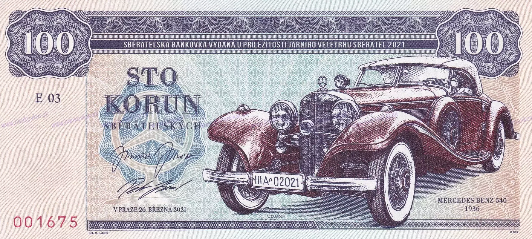 | Predná strana: | Mercedes Benz 540K (typ W24) r.v.1936 |