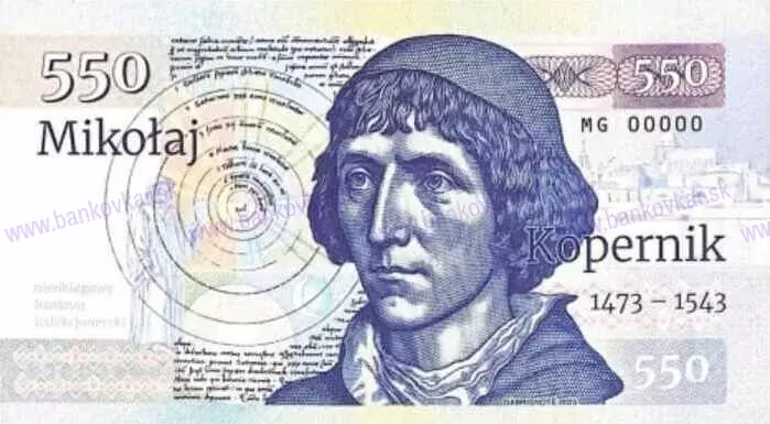 | Predná strana: | Mikuláš Koperník (1473÷1543) bol astronóm, matematik, filozof, humanista, kanonik v katolíckej cirkvi a ekonóm, ktorý pôsobil na území Poľska. |