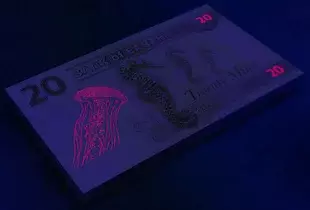| Zloženie: | Vytlačené na papieri s vodoznakom a vláknami fluoreskujúcimi pod ultrafialovým svetlom 20-medúza ,50-krab,100-chobotnica |