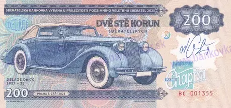 200 korun Zapadlík B - Delage D6-70 (BC zaujímavé čísla)