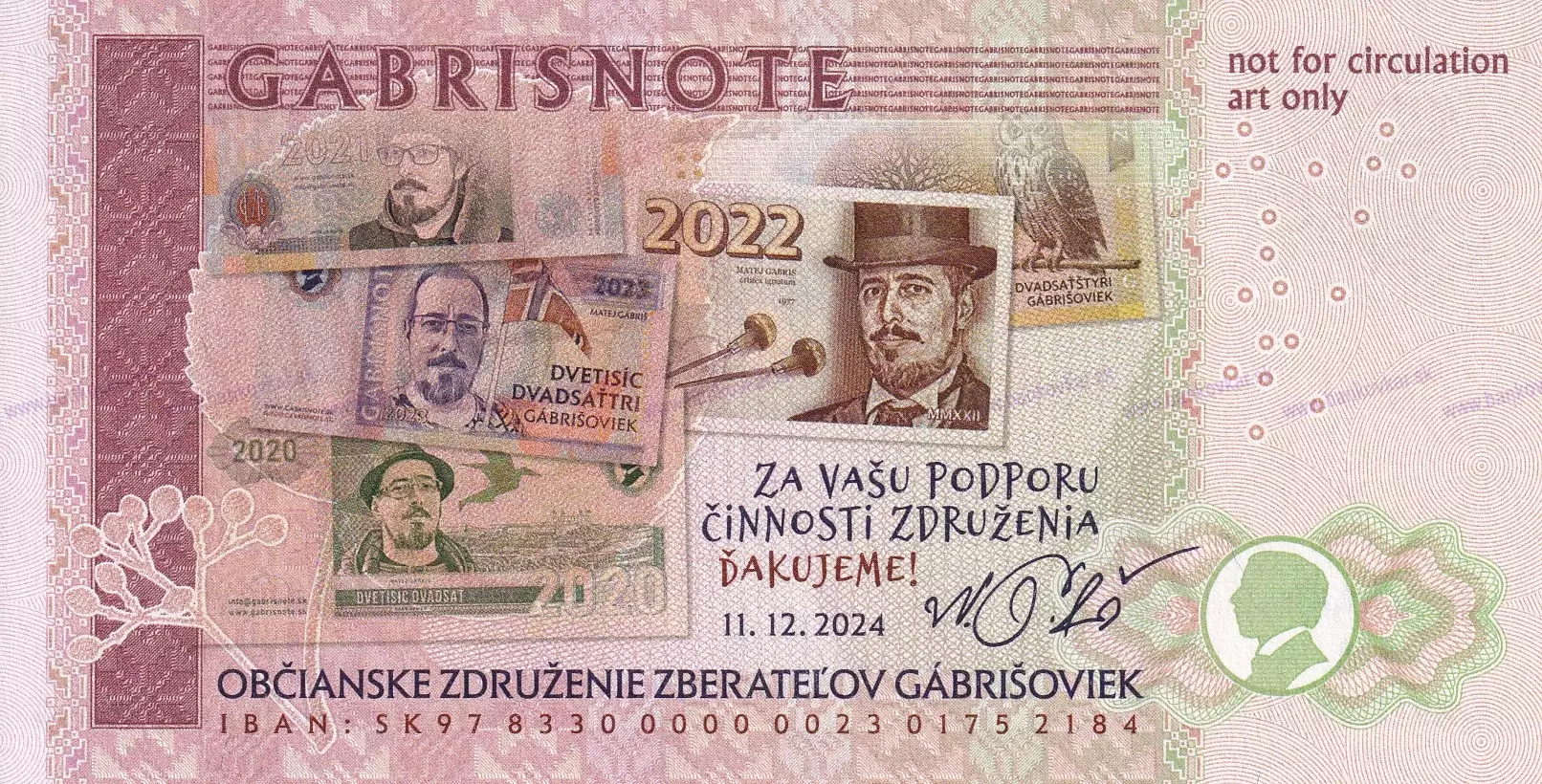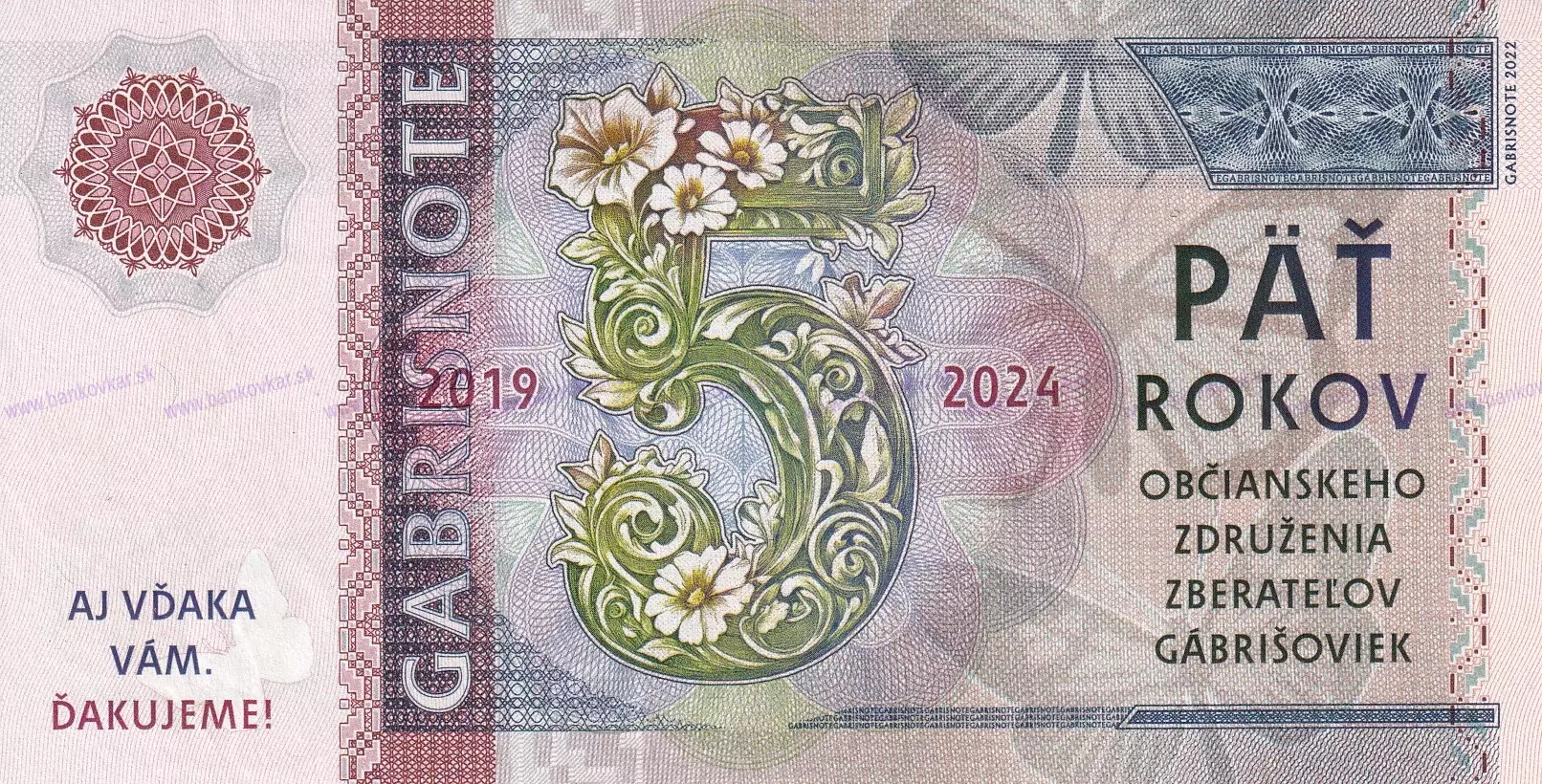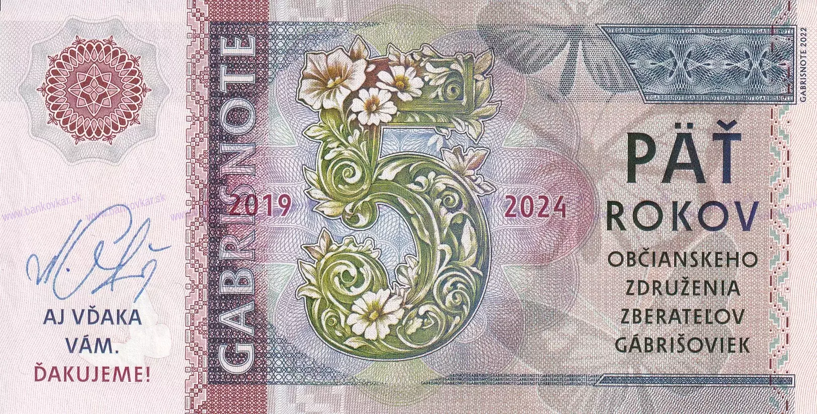 | Motív - téma: | 5 rokov existencie Občianskeho združenia zberateľov gábrišoviek (2019-2024). |