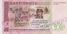 | Zloženie a tlač: | Vytlačené na papieri s vodoznakom "WINDMILLS", s vláknami fluoreskujúcimi pod ultrafialovým svetlom; UV značka: červená na líci = 3 motýle a GABRISNOTE; na rube = žltá - gilošové pásy. Tlač vyhotovila ceninová tlačiareň DAS Security Printing, Praha. |
