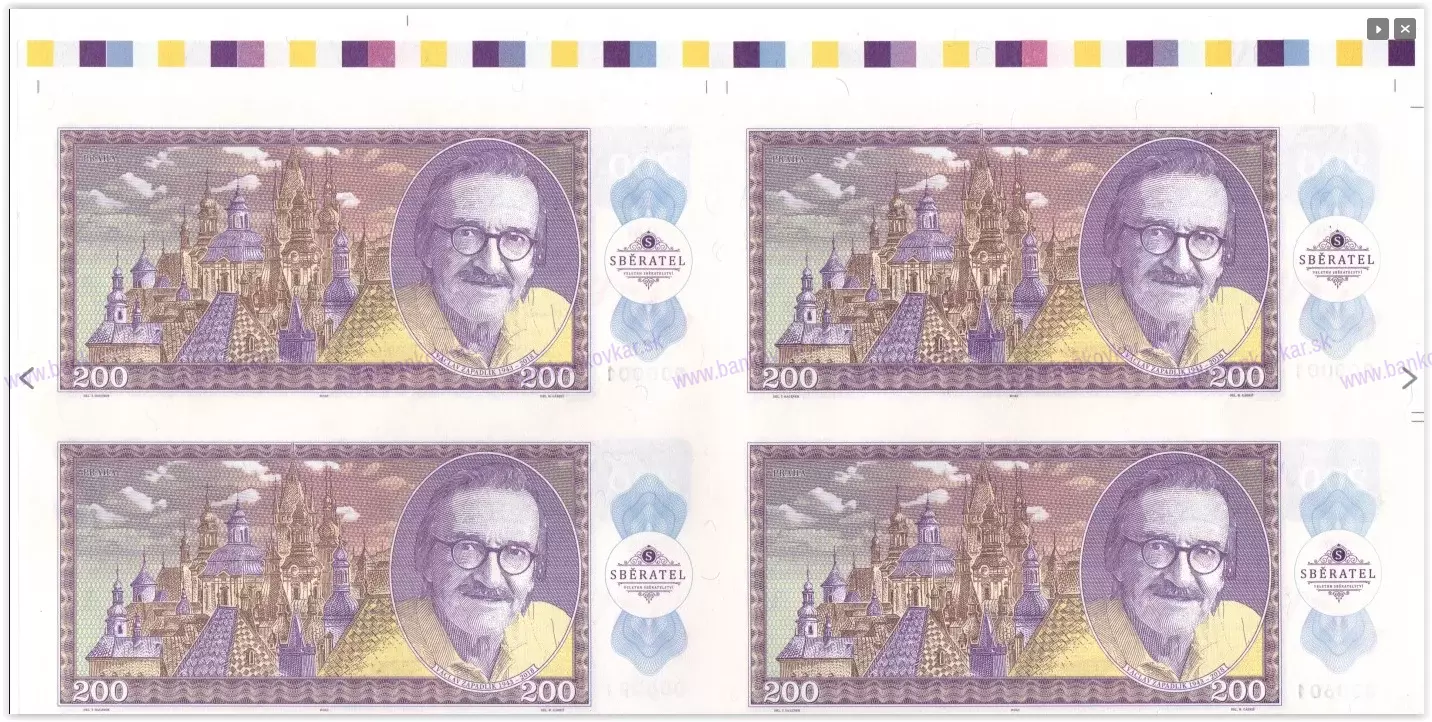 | Zloženie: | Vytlačené na papieri s vodoznakom PROSECURA a vláknami fluoreskujúcimi pod ultrafialovým svetlom | | | |