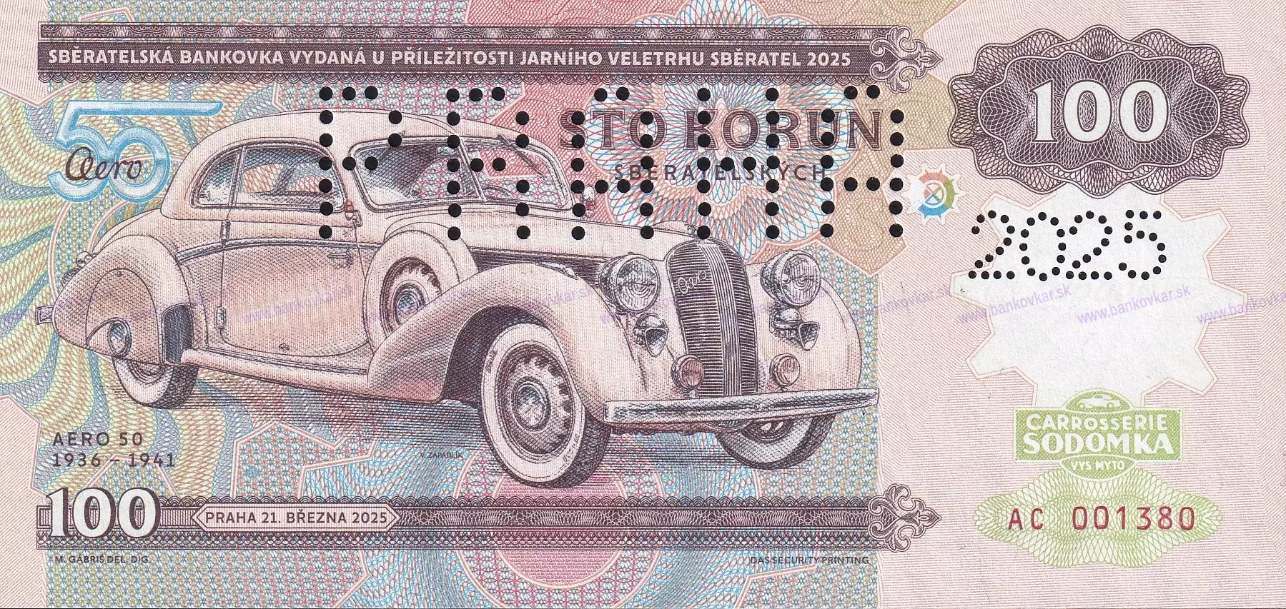 | Predná strana: | Aero 50 limuzina/sedan, r.v. 1936-1941 v karosárskej úprave SODOMKA (vyrobených bolo cca 90 ks). |