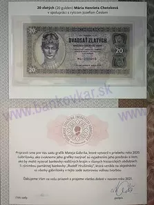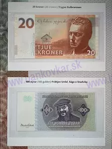 | Obsah: | číslovaná séria MG 00XXX = 11 ks gábrišoviek 1 ks darček; z toho 4 ks majú premiéru a doteraz neboli v predaji: 20 Kroner ; 100 Oyrar ; 350 korún ; 1 big thanks 2021; 20 korún M.Kukučín je so zlatotlačou (prítlač) - lipové listy s plodom |