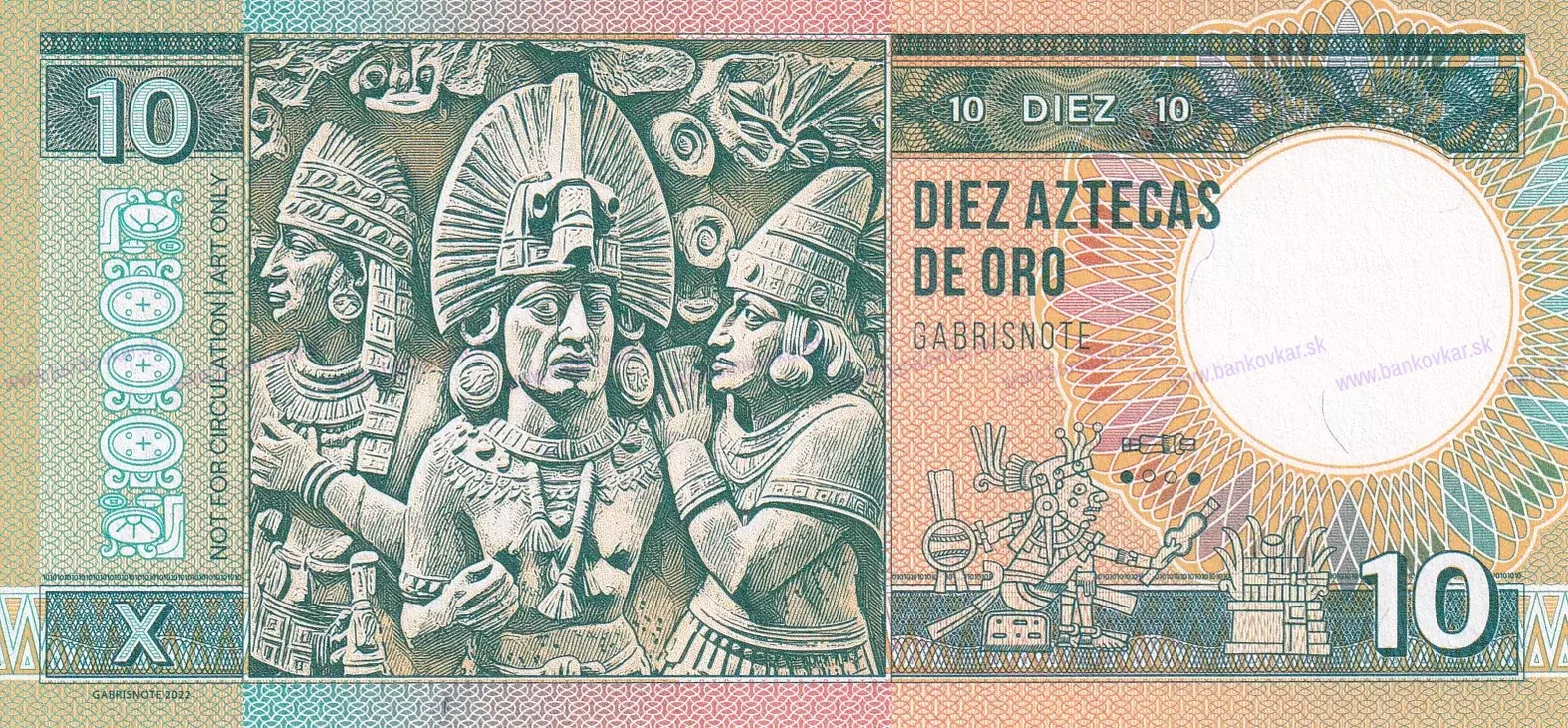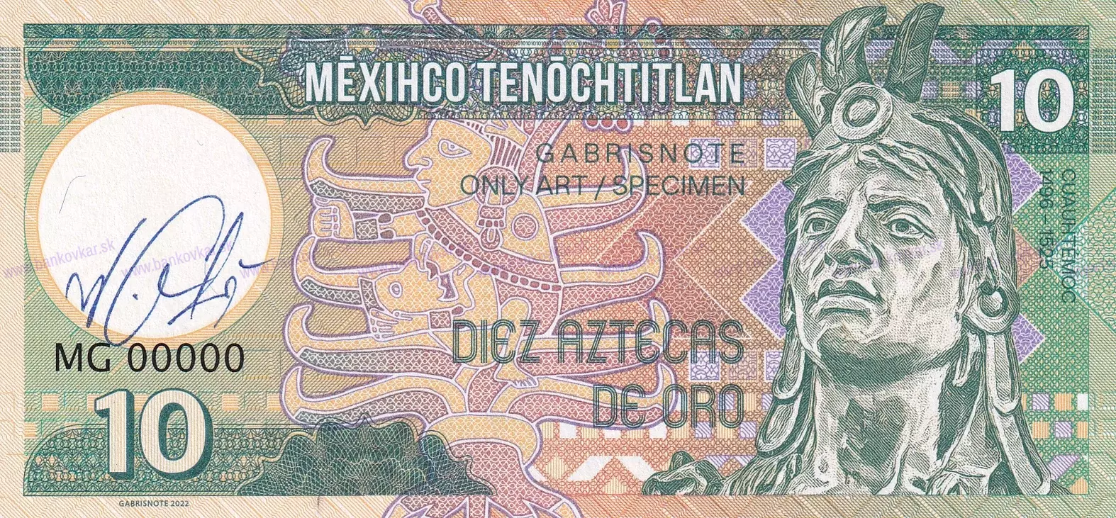 | Motív - téma: | Hlavné mesto aztéckej ríše Tenochtitlan, na mieste ktorého dnes stojí hlavné mesto Mexico. V dobe objavenia mesta Európanmi v 16. storočí malo stotisíc obyvateľov a bolo najväčším mestom amerického kontinentu. |
