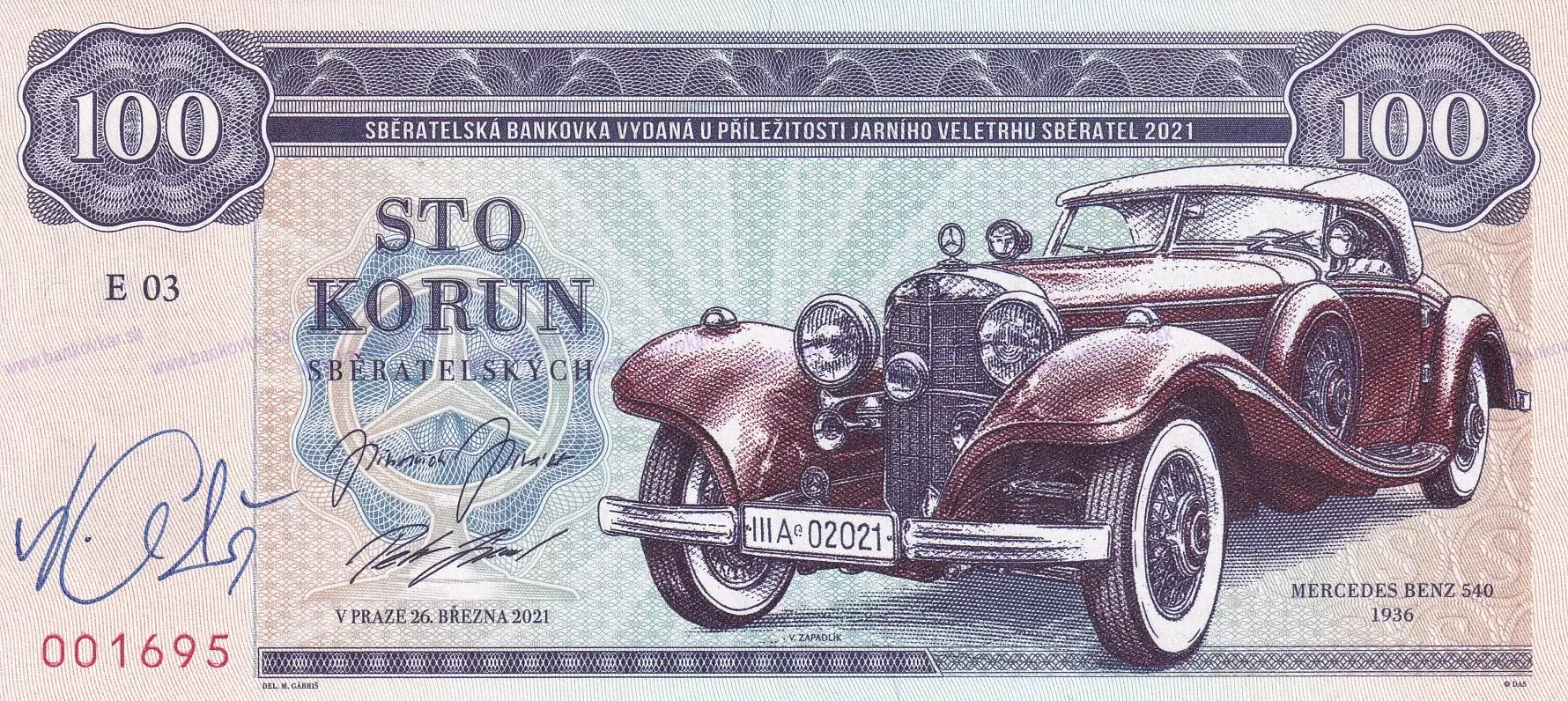 | Predná strana: | Mercedes-Benz 540K (typ W24) bol exkluzívny nemecký automobil vyrábaný spoločnosťou Mercedes-Benz v rokoch 1936-1939, a to iba na zákazku. Bol hlavným súperom talianskeho vozidla Bugatti Typo 57SC.Voz bol uvedený na Parížskom autosalóne v roku 1936 ako nástupca Mercedesu 500K. | |||