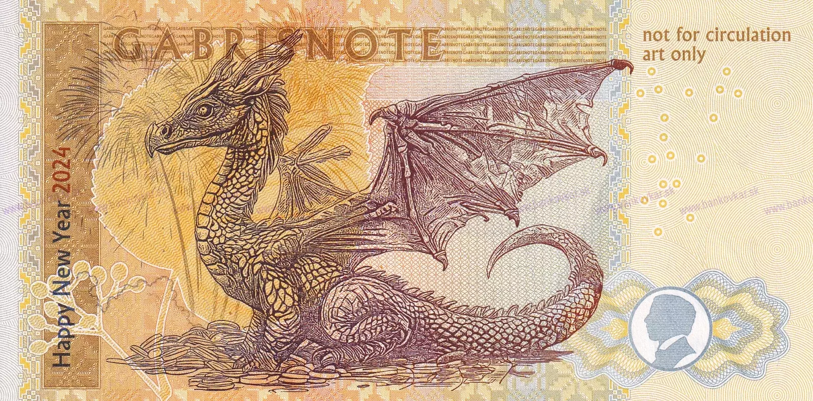 hnedý drak, vľavo dole podpis M.Gábriš