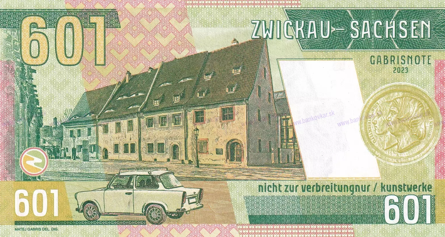 | Zadná strana: | Zwickau je veľké okresné mesto v nemeckej spolkovej zemi Sasko, okresné mesto zemského okresu Cvikov. Žije tu približne 87 tisíc obyvateľov. Preslávilo se predovšetkým výrobou osobných automobilov značky Trabant. V meste má sídlo Západosaská vysoká škola Cvikov, na ktorej študuje viac než 5000 študentov. |