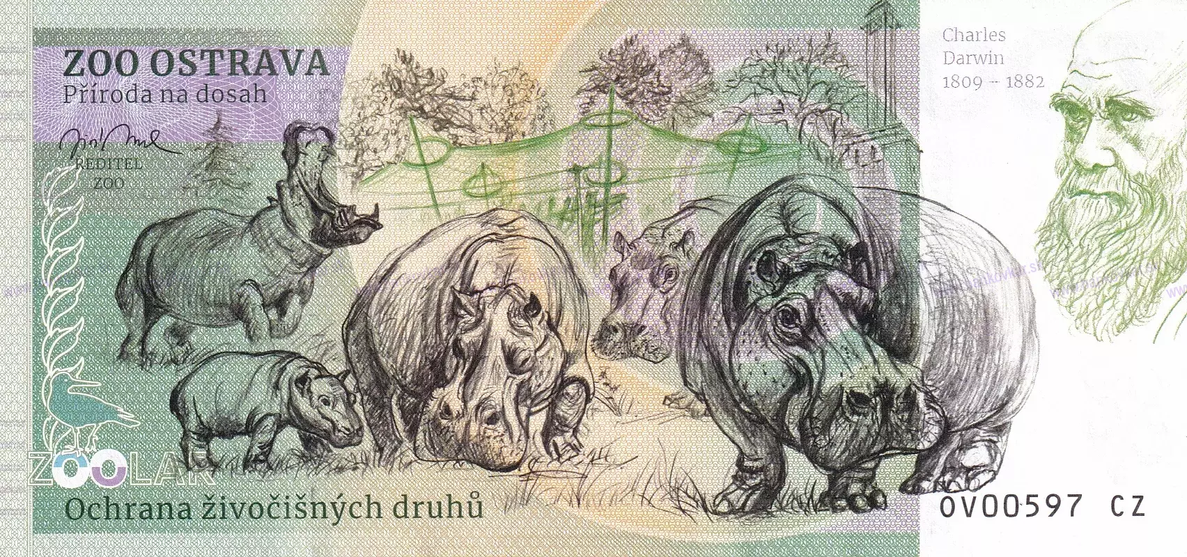 | Zadná strana: | Riaditeľ ZOO: Jiří Novák / Hroch / Charles Darwin (1809÷1882) |