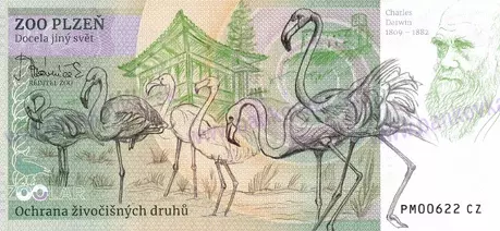 | Zadná strana: | Riaditeľ ZOO: Ing. Jiří Trávníček / Plameniak / Charles Darwin (1809÷1882) |
