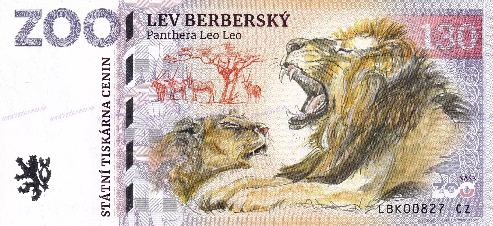 | Nominálna hodnota: | 130 - Lev berberský (Panthera Leo Leo) / SK: Lev púšťový berberský |