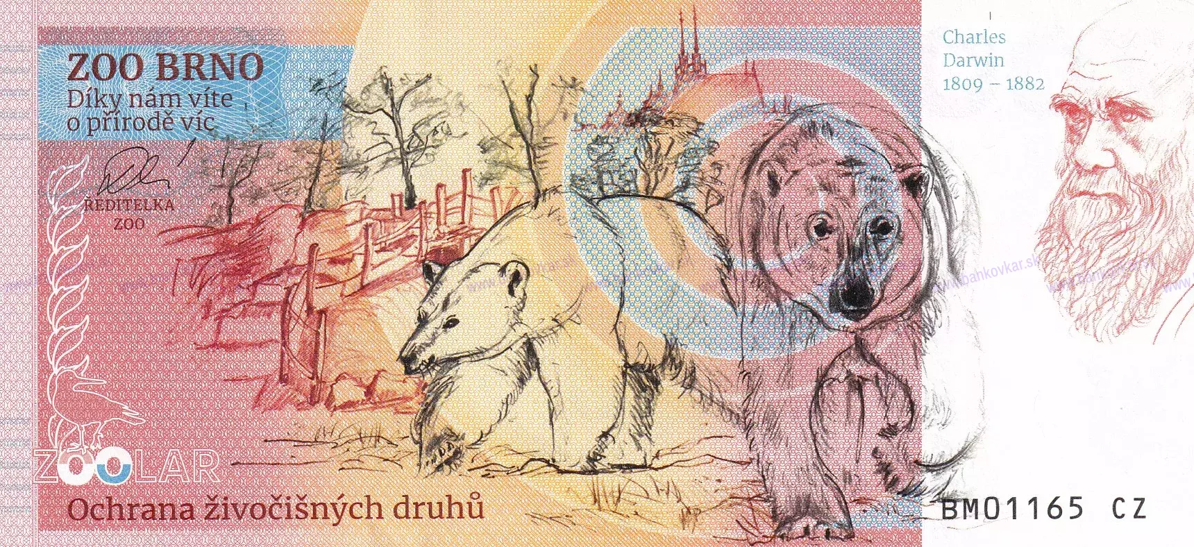 | Zadná strana: | Riaditeľka ZOO: Mgr. Radana Dungelová / Medveď ľadový / Charles Darwin (1809÷1882) |