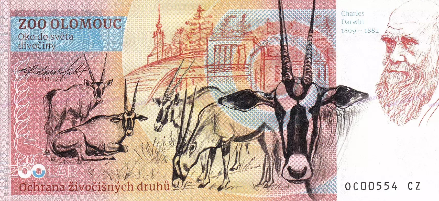 | Zadná strana: | Riaditeľ ZOO: Dr.Ing.Radomír Habáň / Oryx juhoafrický / Charles Darwin (1809÷1882) |