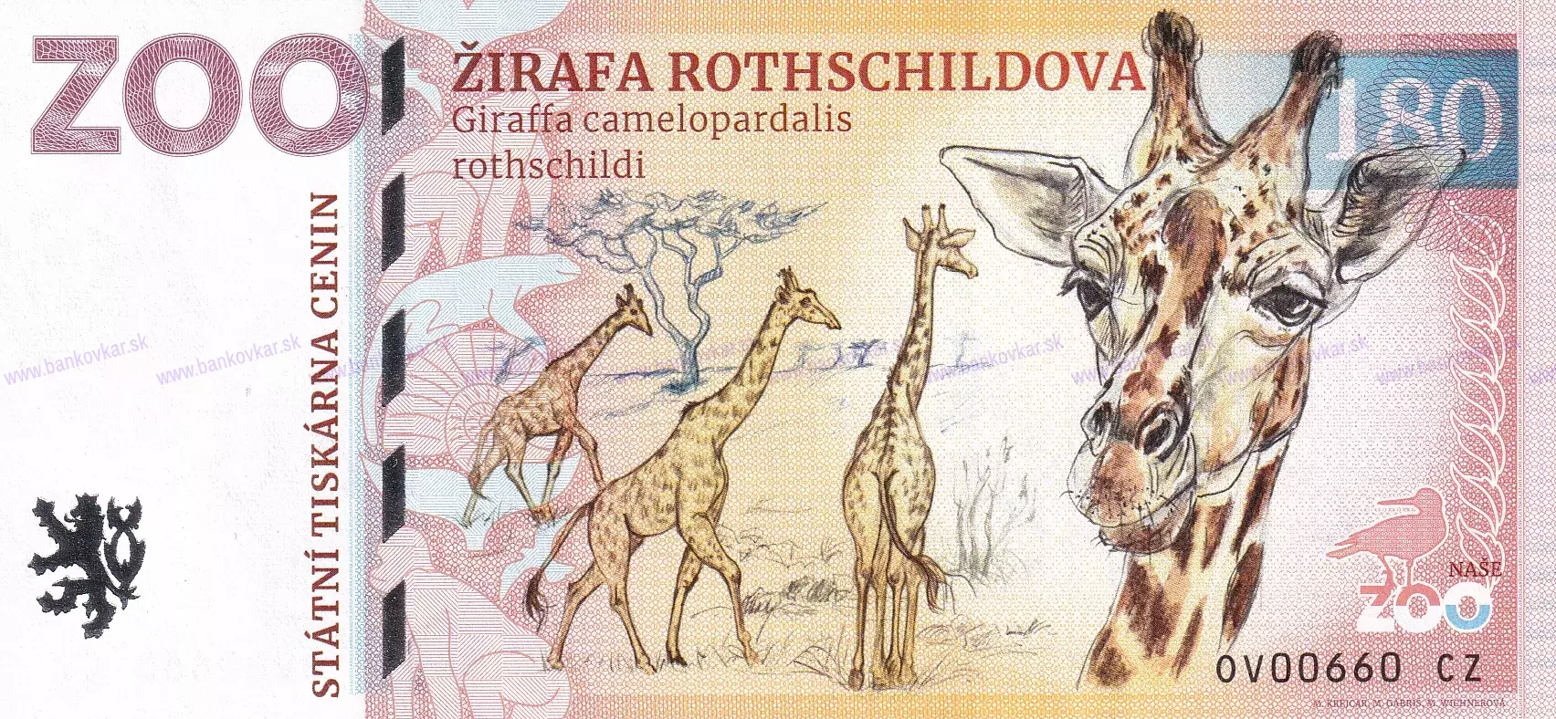 | Nominálna hodnota: | 180 - Žirafa Rothschildova (Giraffa camelopardalis rothschildi / SK: Žirafa núbijská Rothschildova) |