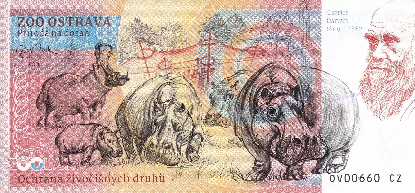 | Zadná strana: | Riaditeľ ZOO: Jiří Novák / Hroch / Charles Darwin (1809÷1882) |
