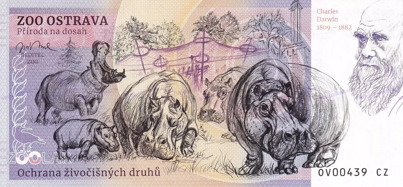 | Zadná strana: | Riaditeľ ZOO: Jiří Novák / Hroch / Charles Darwin (1809÷1882) |
