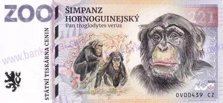 | Predná strana: | 221 - Šimpanz hornoguinejský / strieborný znak: český lev |