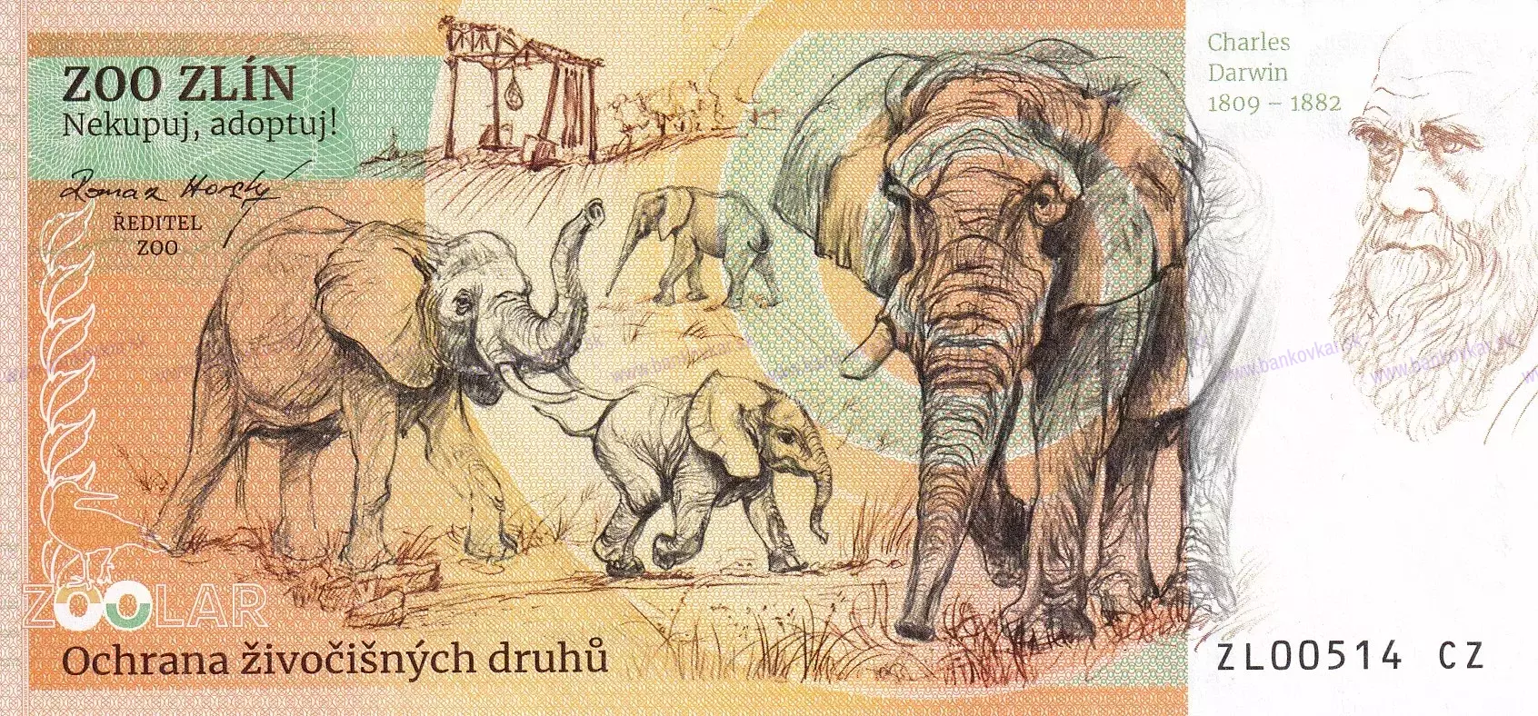 | Zadná strana: | Riaditeľ ZOO: Roman Horský / Slon africký / Charles Darwin (1809÷1882) |