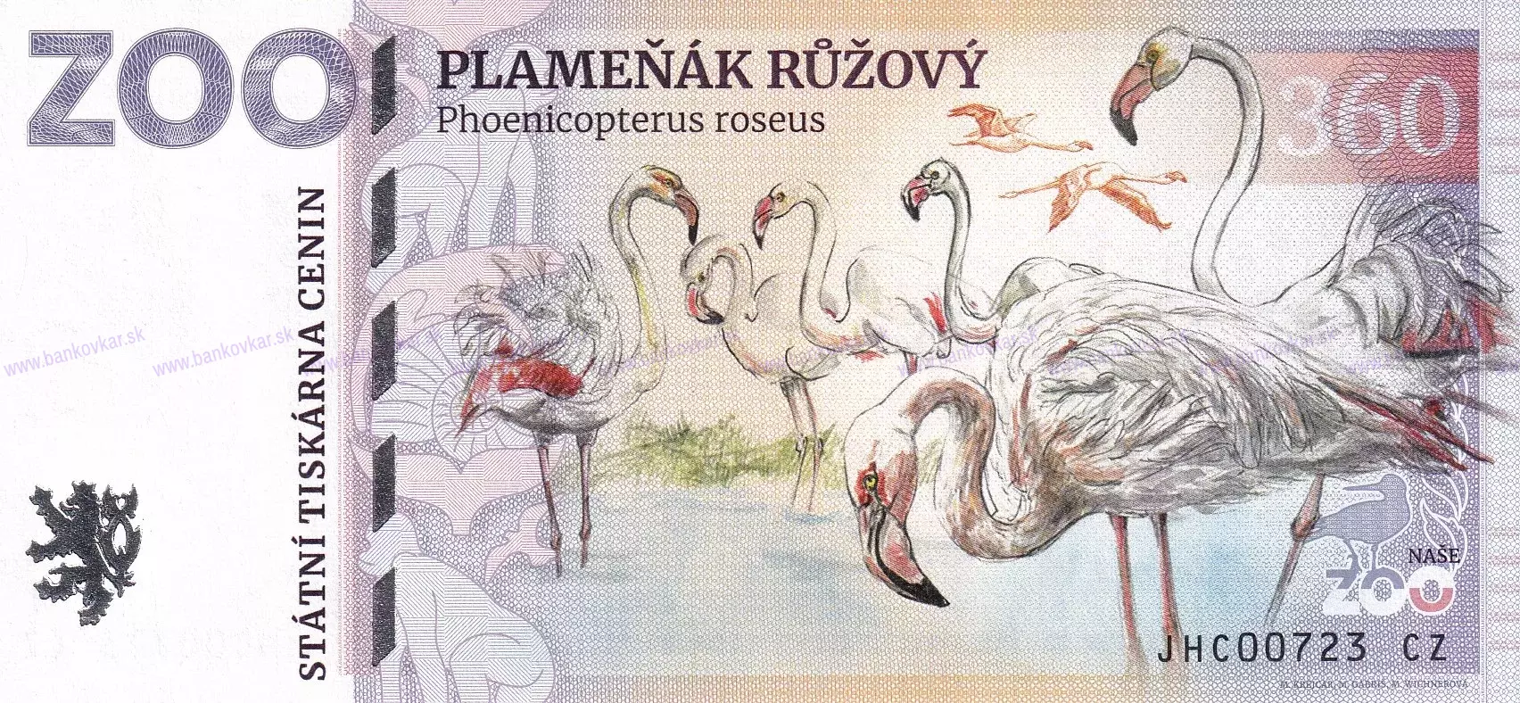 | Nominálna hodnota: | 360 - Plameňák růžový (Phoenicopterus roseus) / SK: Plameniak ružový |