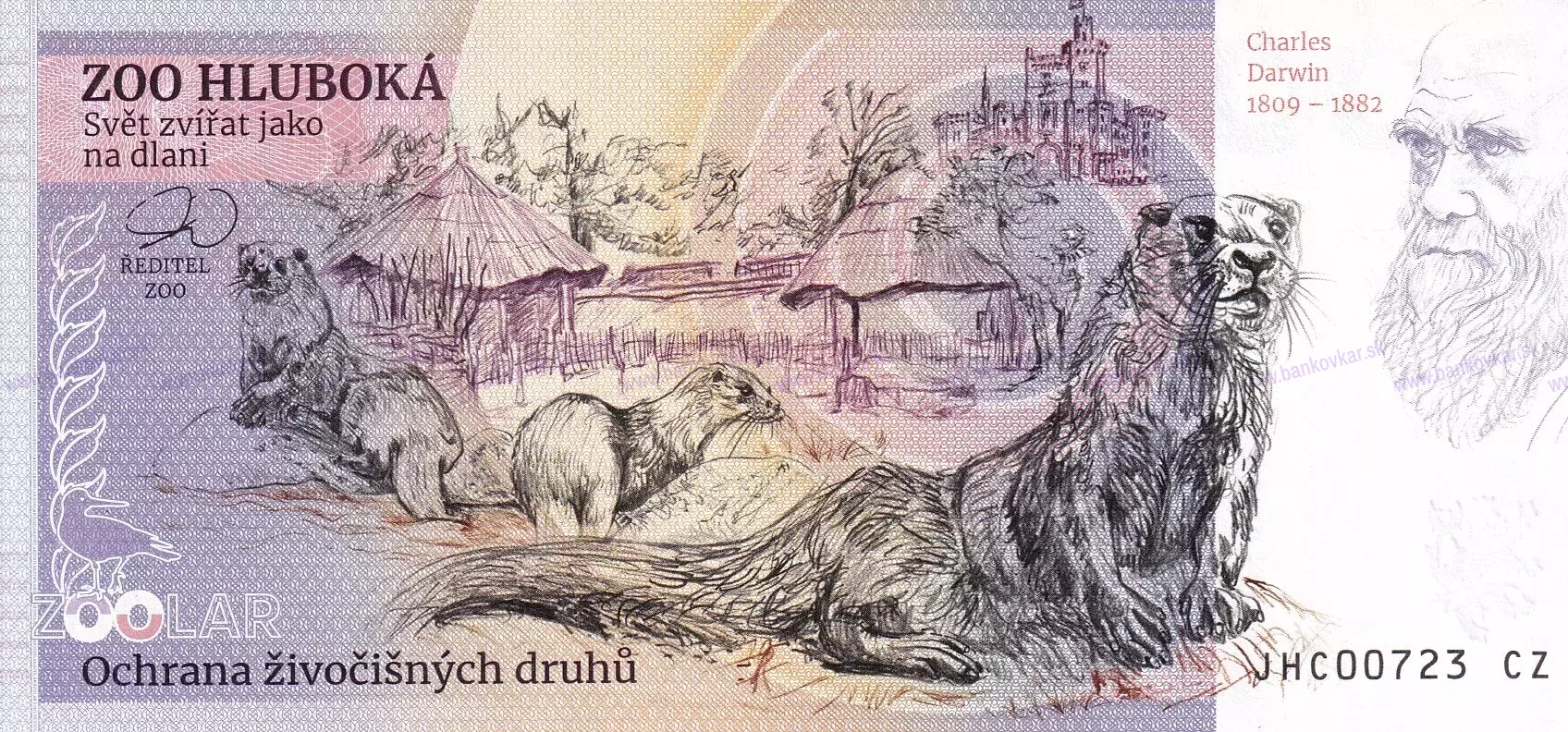 | Zadná strana: | Riaditeľ ZOO : Ing. Vladimír Pokorný / Vydra říční + zámek Hluboká n./V. / Charles Darwin (1809÷1882) |