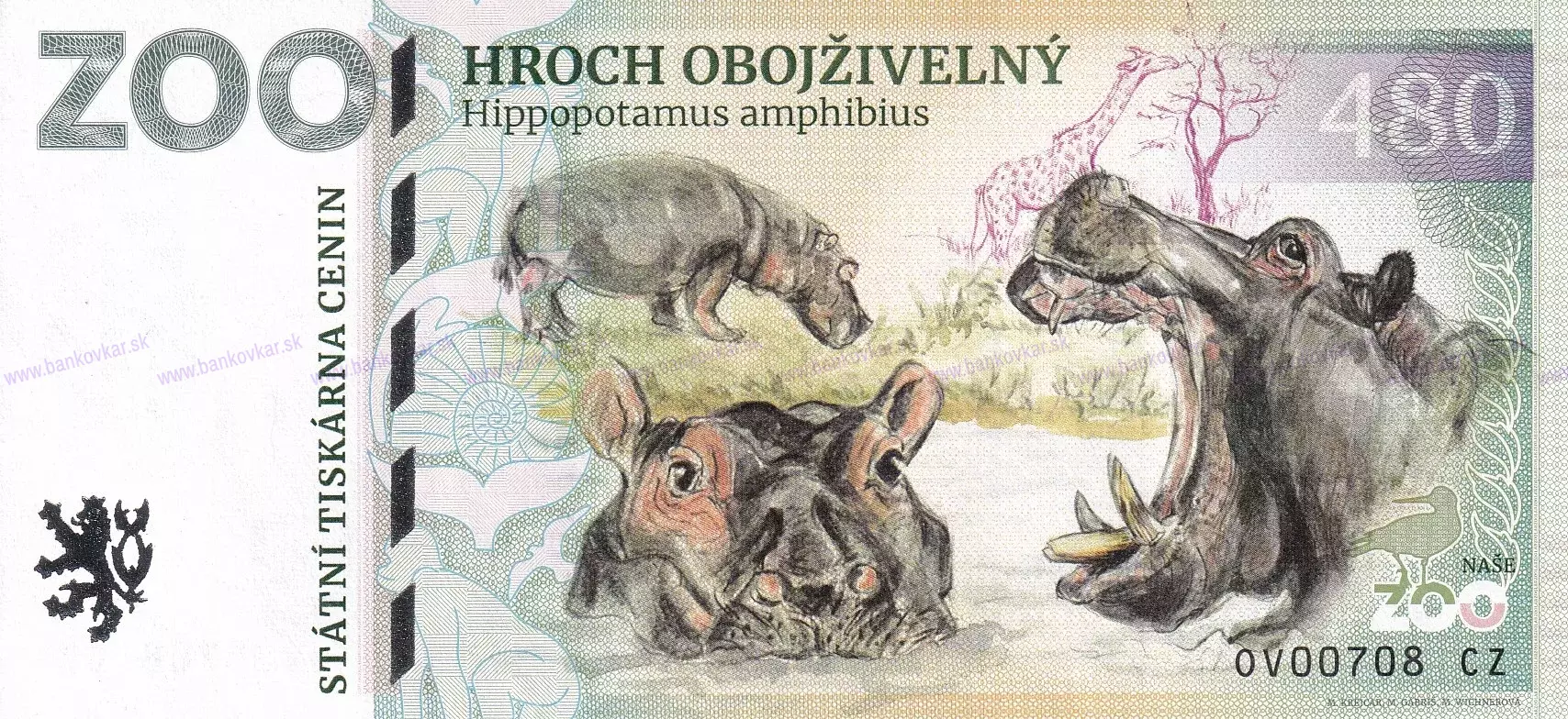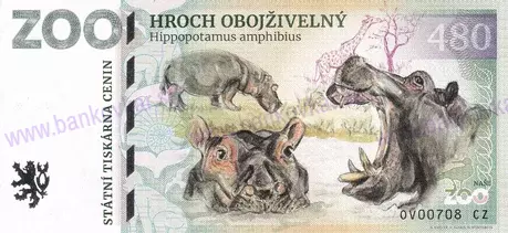 | Nominálna hodnota: | 480 - Hroch obojživený (Hippopotamus amphibius) / SK: Hroch obojživelný |