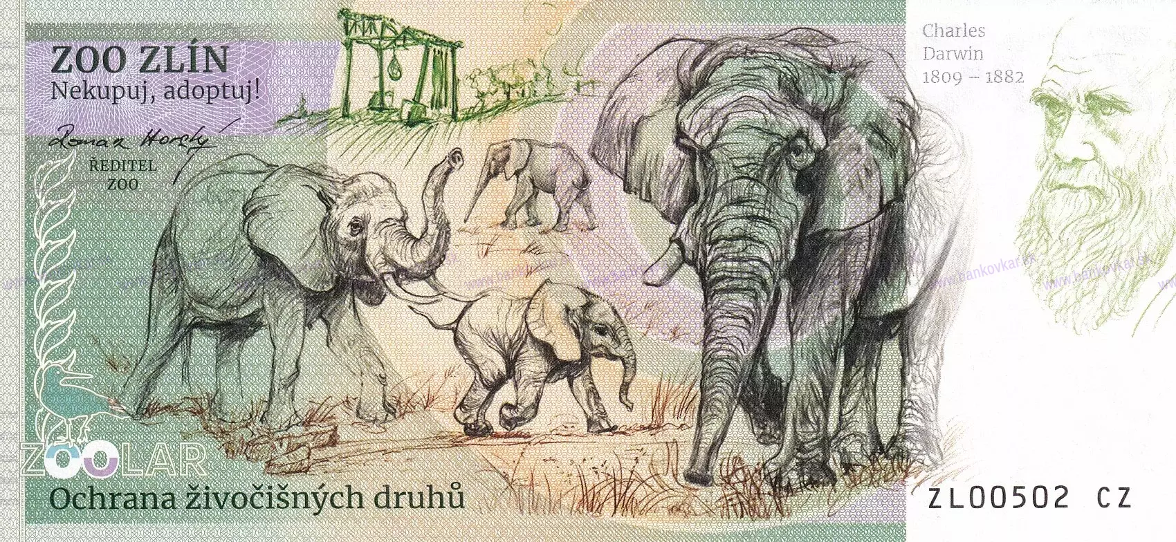 | Zadná strana: | Riaditeľ ZOO: Roman Horský / Slon africký / Charles Darwin (1809÷1882) |