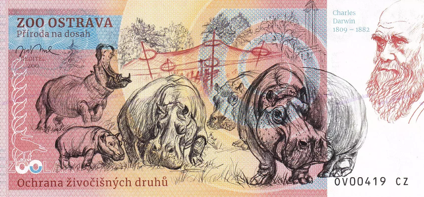 | Zadná strana: | Riaditeľ ZOO: Jiří Novák / Hroch / Charles Darwin (1809÷1882) |