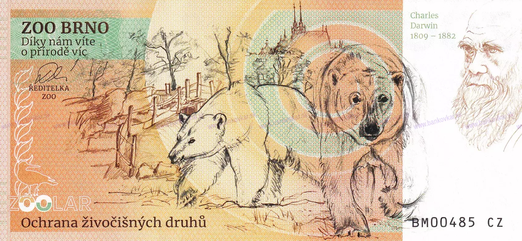 | Zadná strana: | Riaditeľka ZOO: Mgr. Radana Dungelová / Medveď ľadový / Charles Darwin (1809÷1882) |