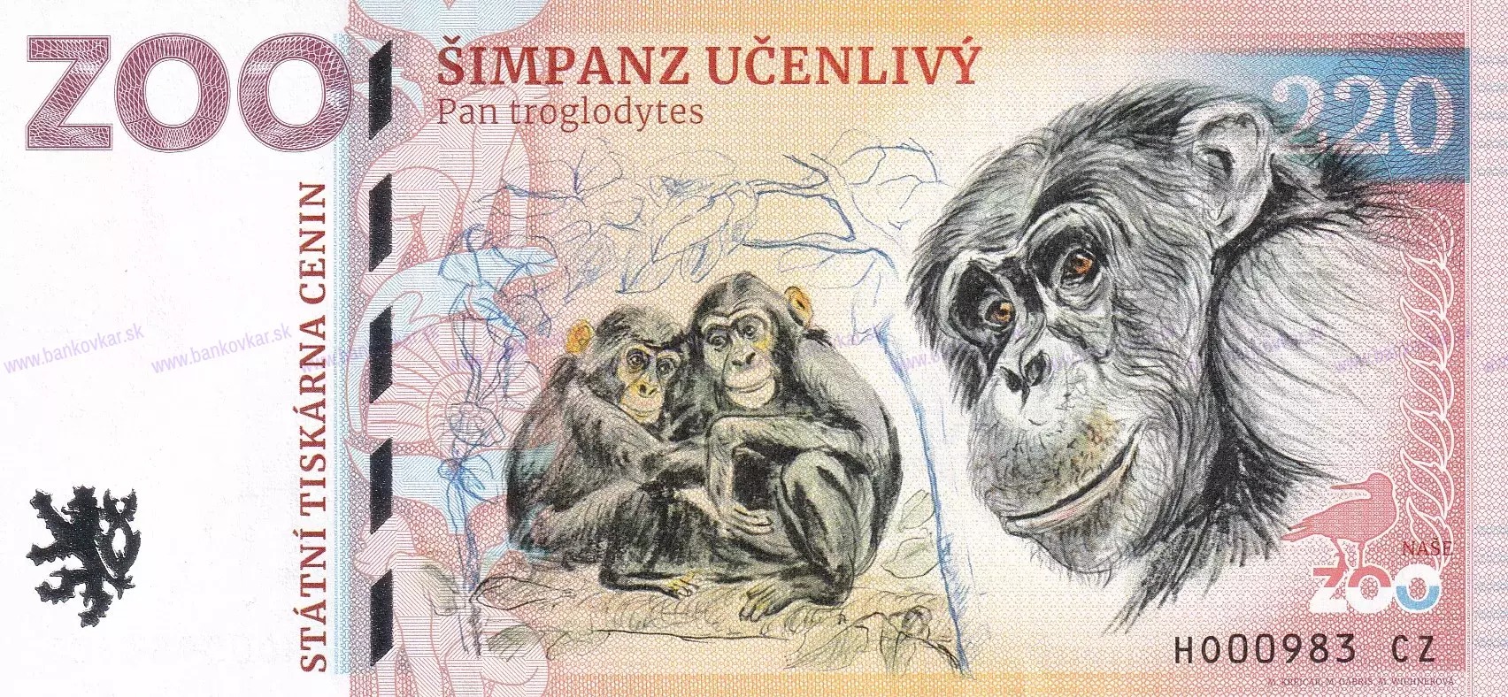| Nominálna hodnota: | 220 - Šimpanz učenlivý (Pan troglodytes / SK: Šimpanz učenlivý) |