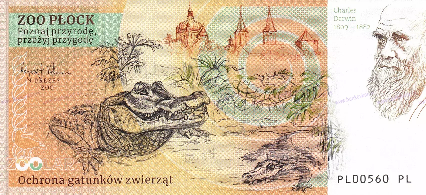 | Zadná strana: | Riaditeľ ZOO: Krzysztof Kelman, predseda správ.rady / Krokodíl / Charles Darwin (1809÷1882) |