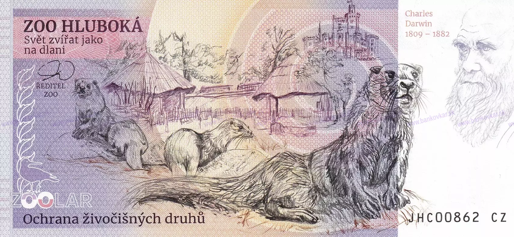 | Zadná strana: | Riaditeľ ZOO: Ing. Vladimír Pokorný / Vydra říční zámek Hluboká n/Vltavou / Charles Darwin (1809÷1882) |