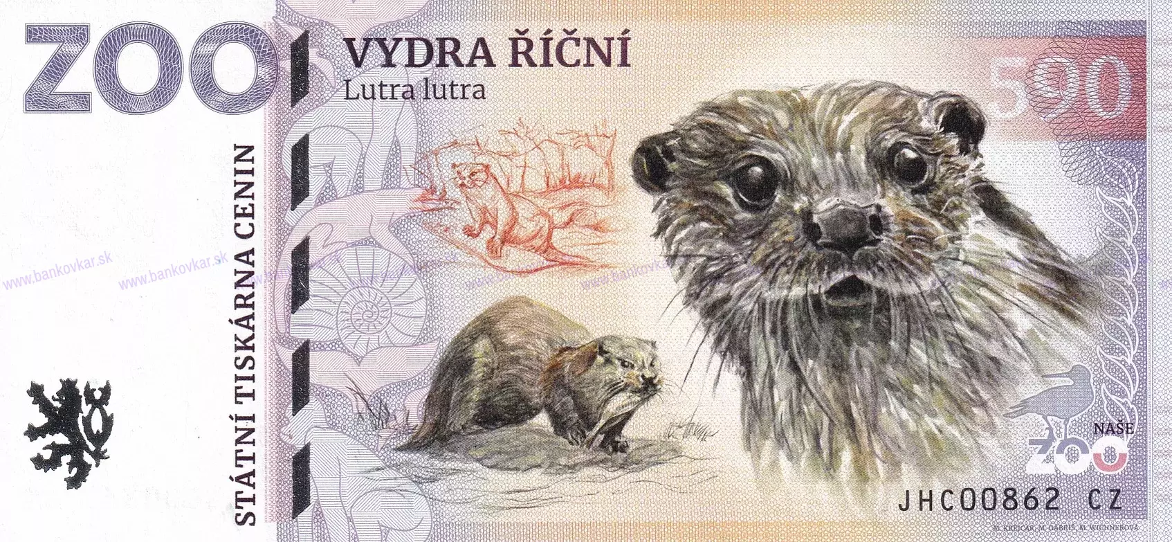 | Nominálna hodnota: | 590 - Vydra říční (Lutra lutra) / SK: Vydra riečna |