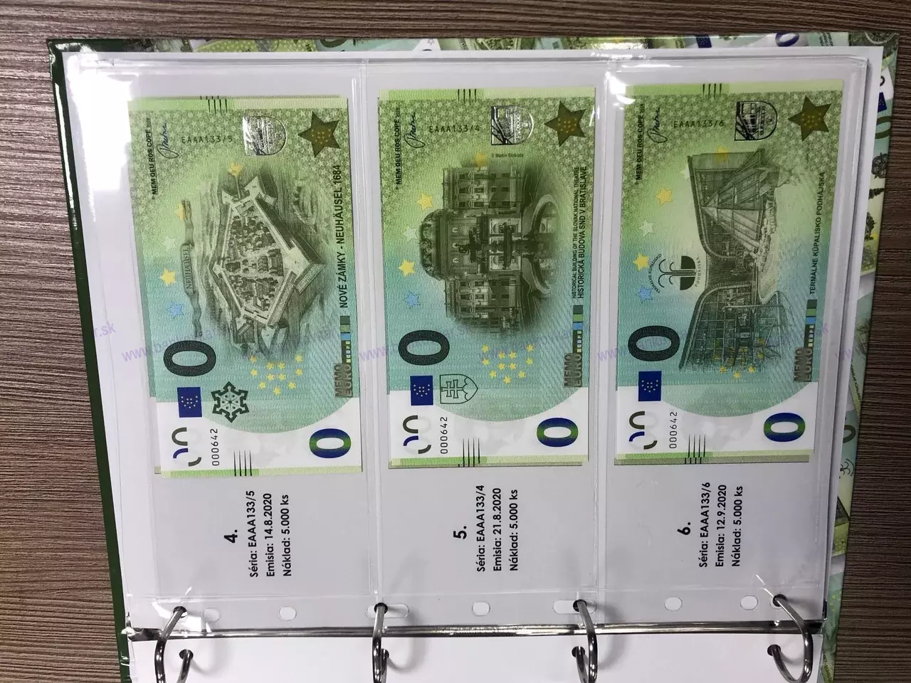 Sada obsahuje: 32 ks MemoEuro suvenírov s rovnakým nízkym číslom 6xx + 1 ks ALBUM MemoEuro + 12 ks priesvitné listy VARIO 3C + 8 ks predtlačené listy Slovensko + 2 ks predtlačené listy Česko