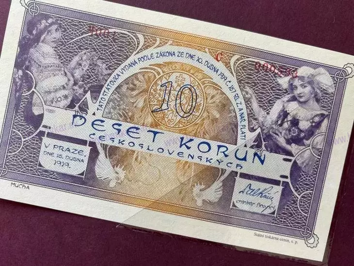 Škicu na prípravu novotlače zapožičala pravnučka Aloisa Rašína Karolina Breitenmoser-Stransky. Škicu bolo možné litograficky ručne spracovať pôvodným postupom pre kníhtlač, grafici Štátnej tlačiarne cenín sa však rozhodli pre reprodukciu pôvodnej kresby obyčajnou ceruzkou, aby zachovali filigránske detaily Muchovho originálu. Bolo nutné však doplniť nespracované rastre, naškicovaný text nahradiť definitívnym a určiť farebnosť. Prvá československá desaťkorunáčka tak po 103 rokoch dostala podobu, akú by pravdepodobne mala v prípade, že by obe strany realizoval Alfons Mucha.